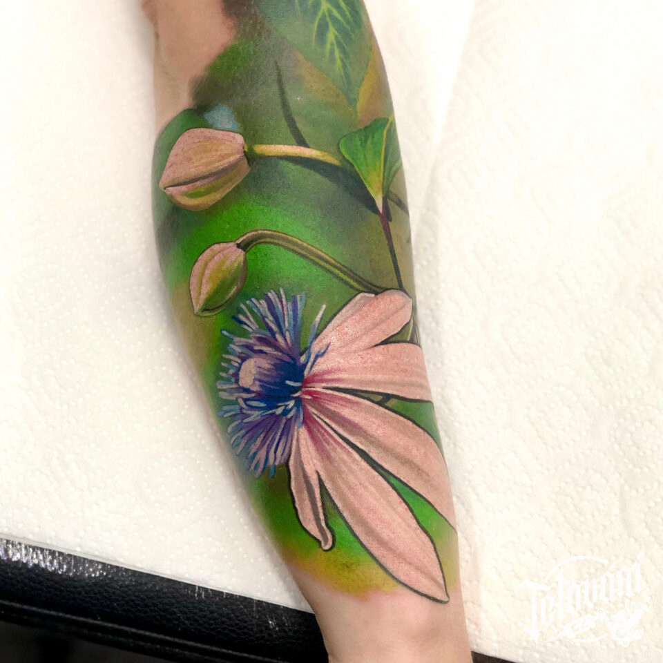 Tetování květiny na lýtko
