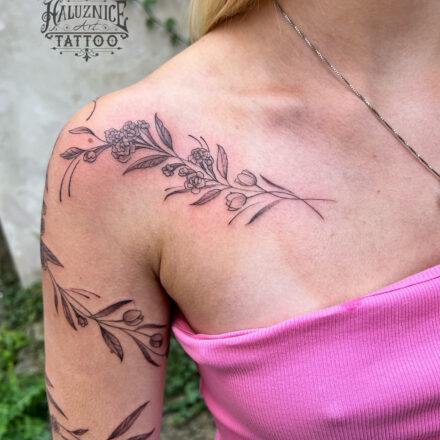 Tetování květiny na lýtku