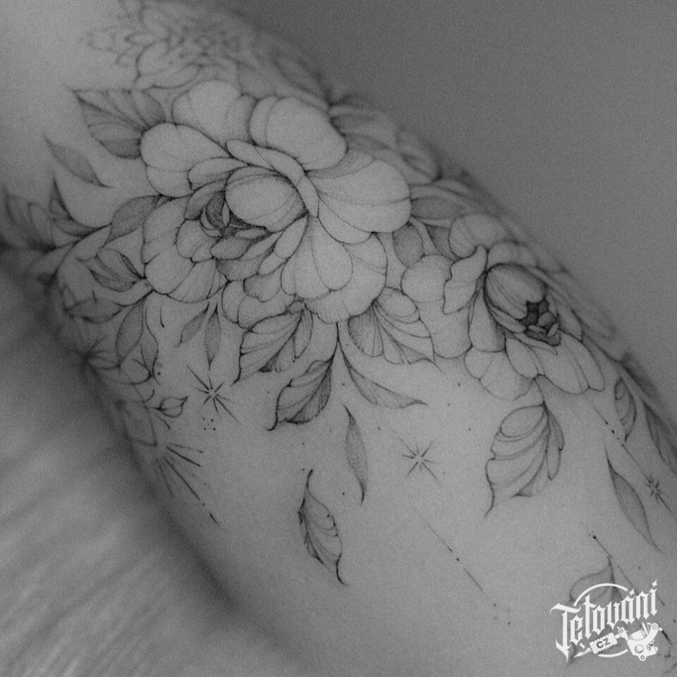 Tetování květiny na lýtku