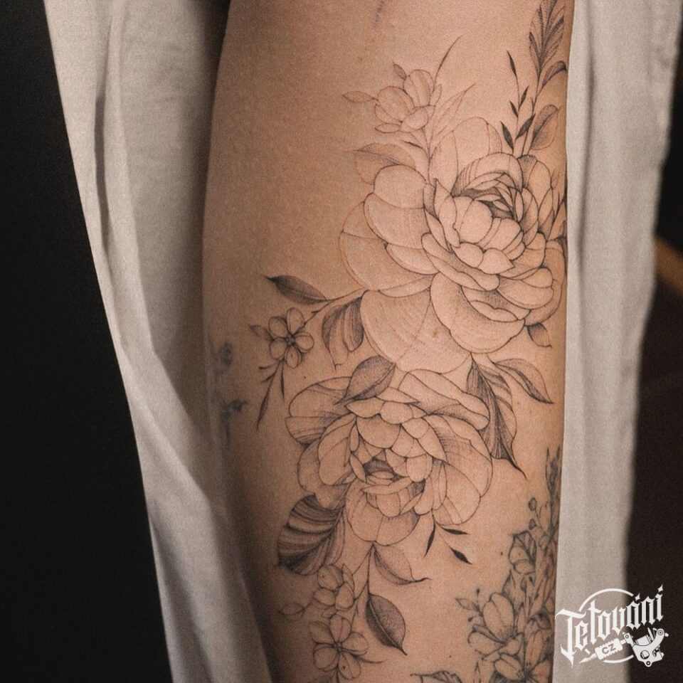 Tetování květiny na lýtku