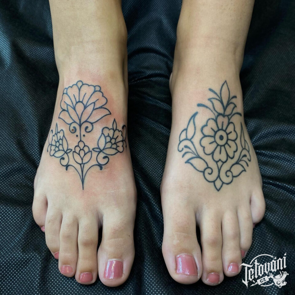 Tetování květiny na nártu