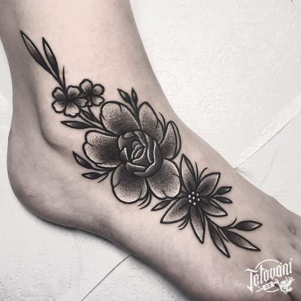 Tetování květiny na nártu