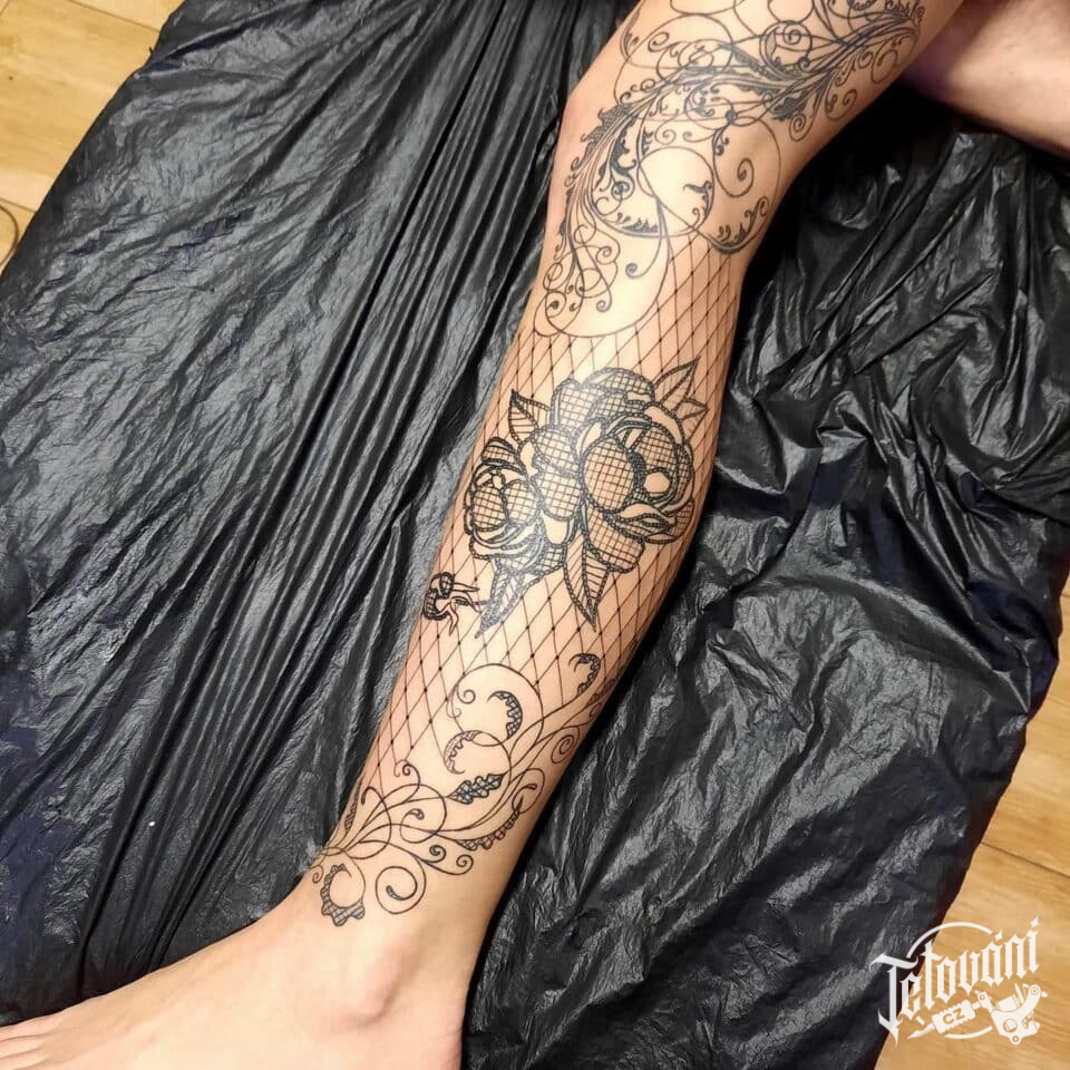 Tetování květiny na noze