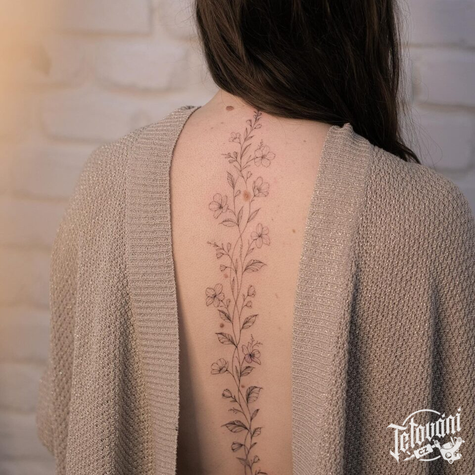 Tetování květiny na páteř