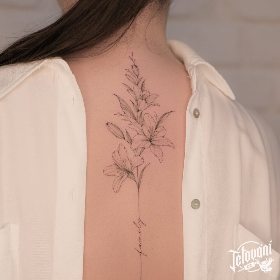 Tetování květiny na páteř