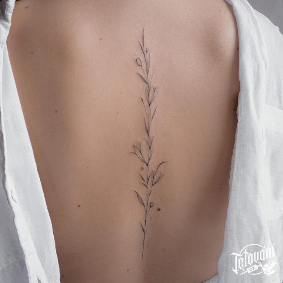 Tetování květiny na páteři