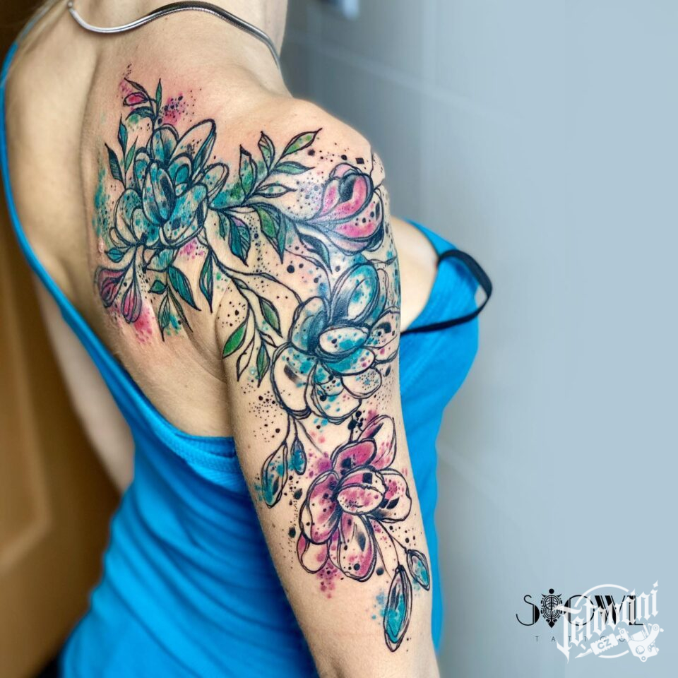 Tetování květiny na rameni
