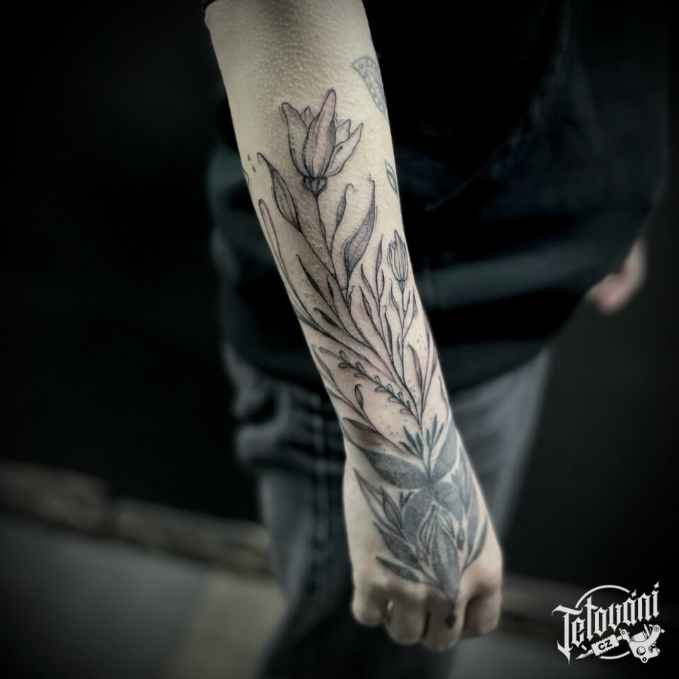 Tetování květiny na předloktí
