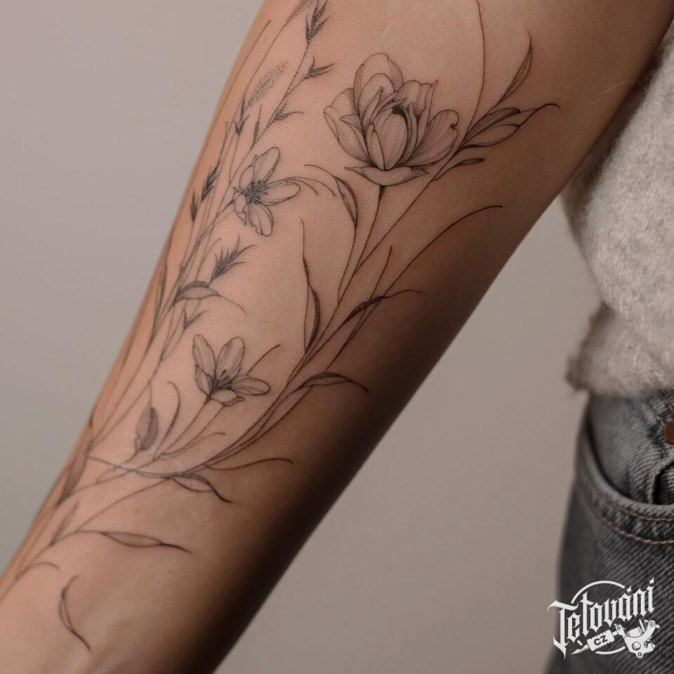 Tetování květiny na předloktí