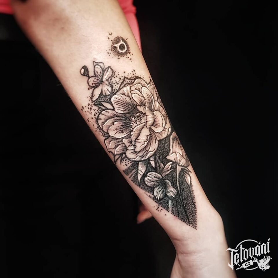 Tetování květiny na předloktí
