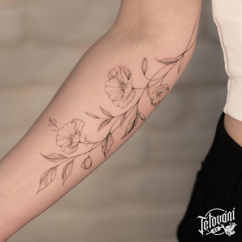 Tetování květiny na předloktí
