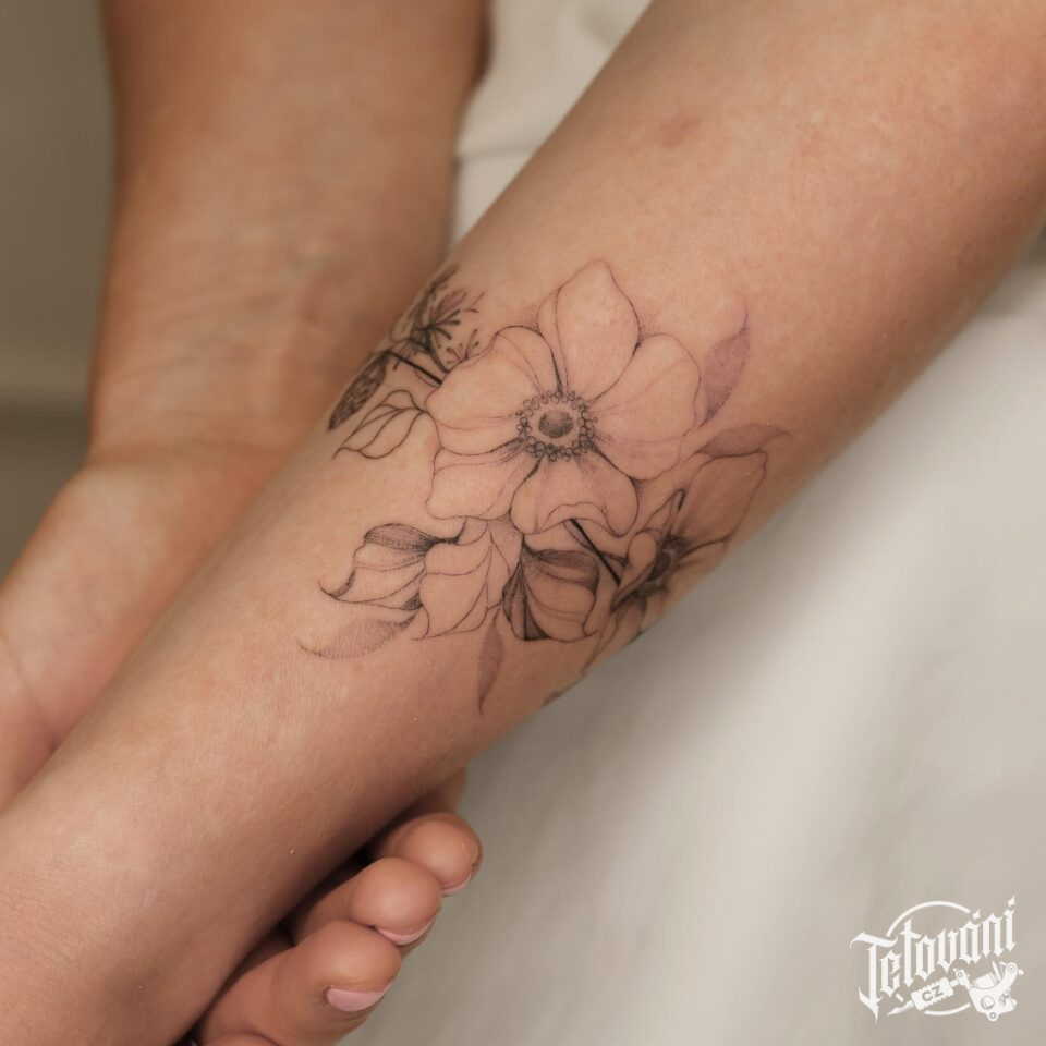 Tetování květiny na předloktí