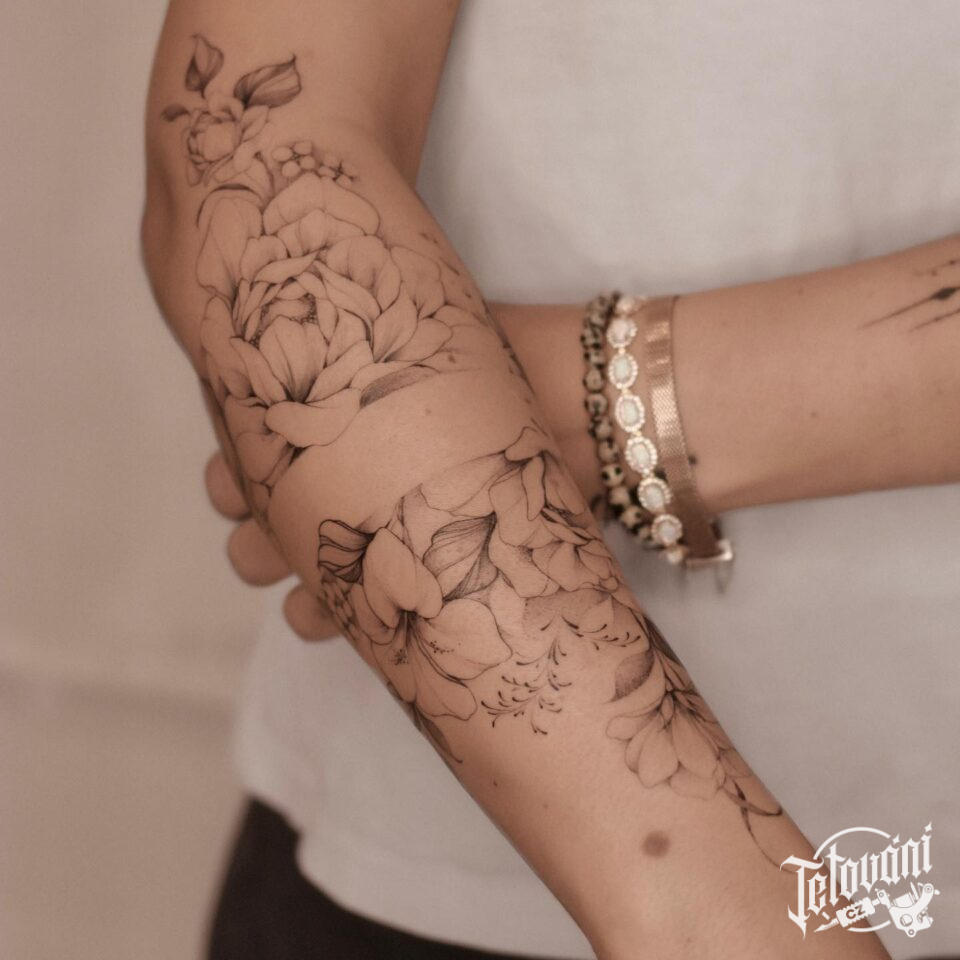 Tetování květiny na předloktí