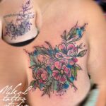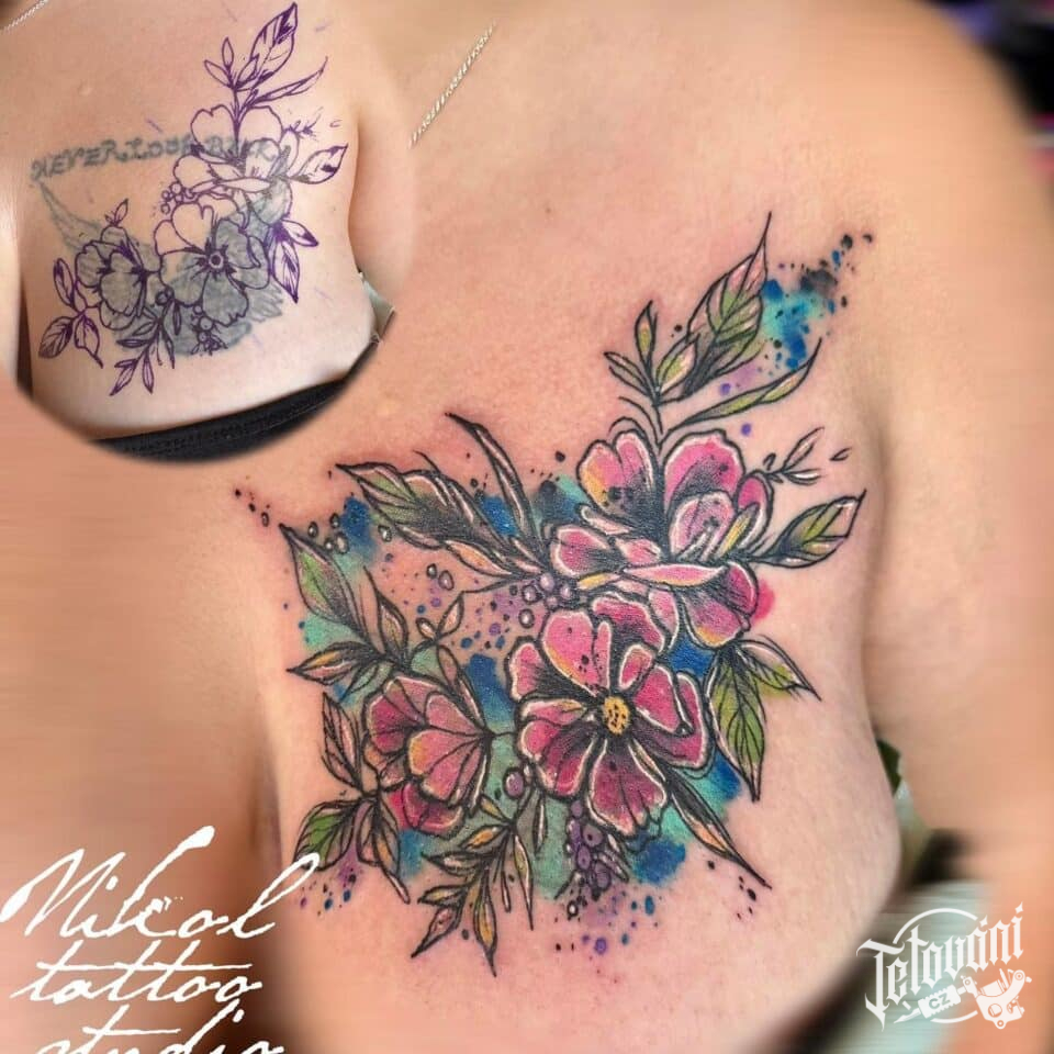 Tetování květiny na prso