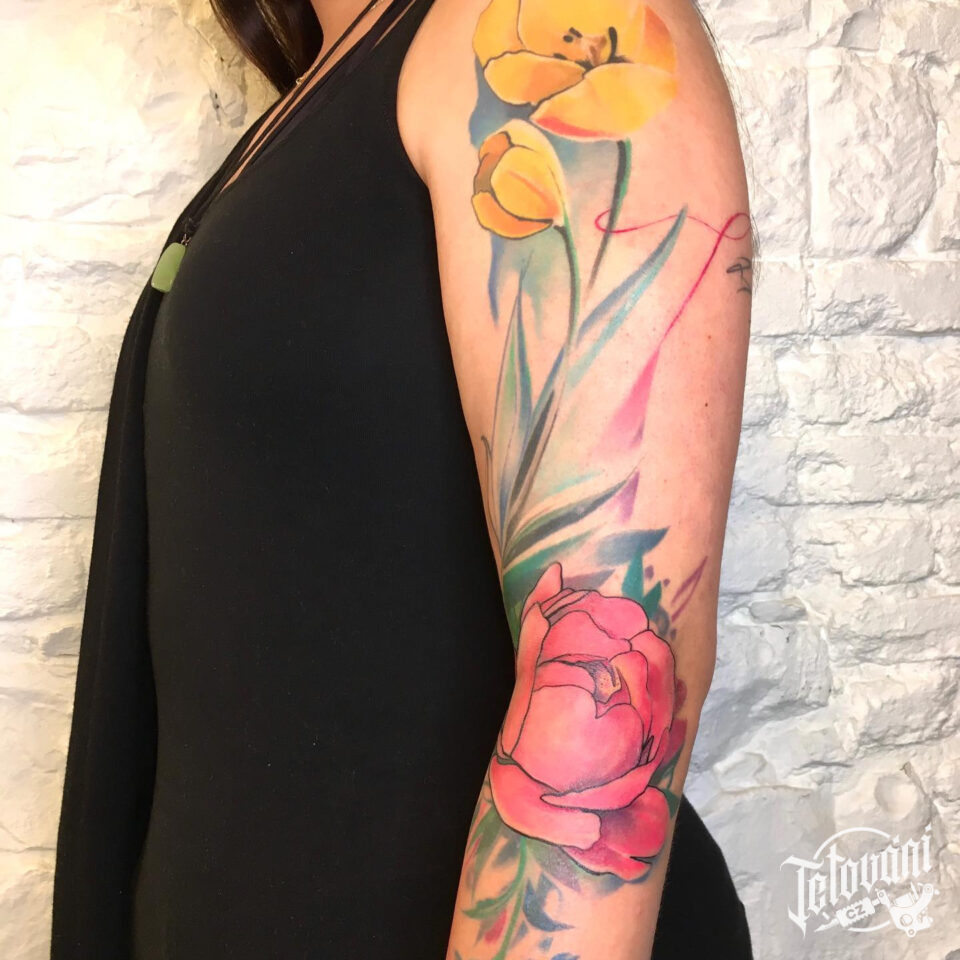 Tetování květiny na rameni