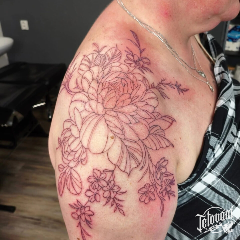 Tetování květiny na rameni