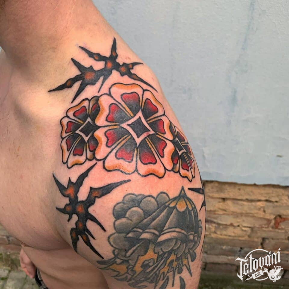Tetování květiny na rameni