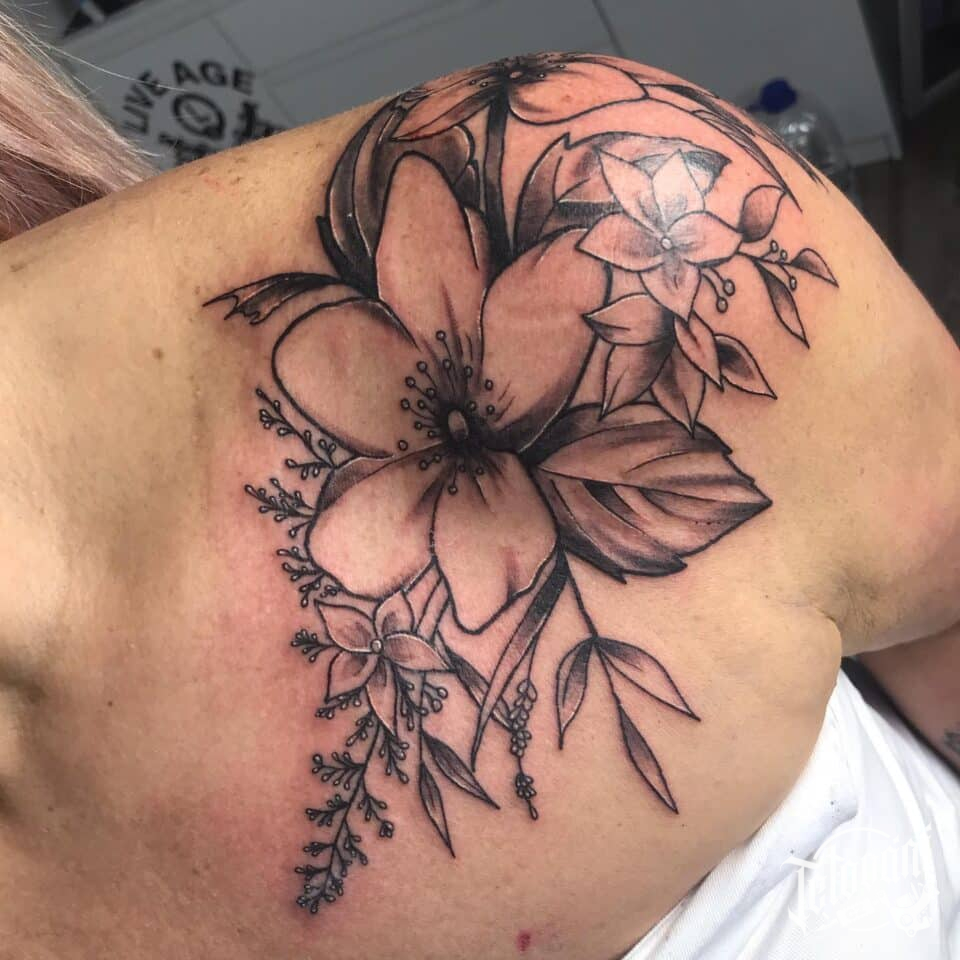 Tetování květiny na rameni