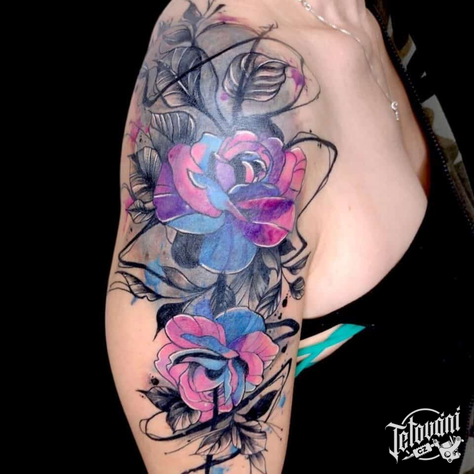 Tetování květiny na rameni