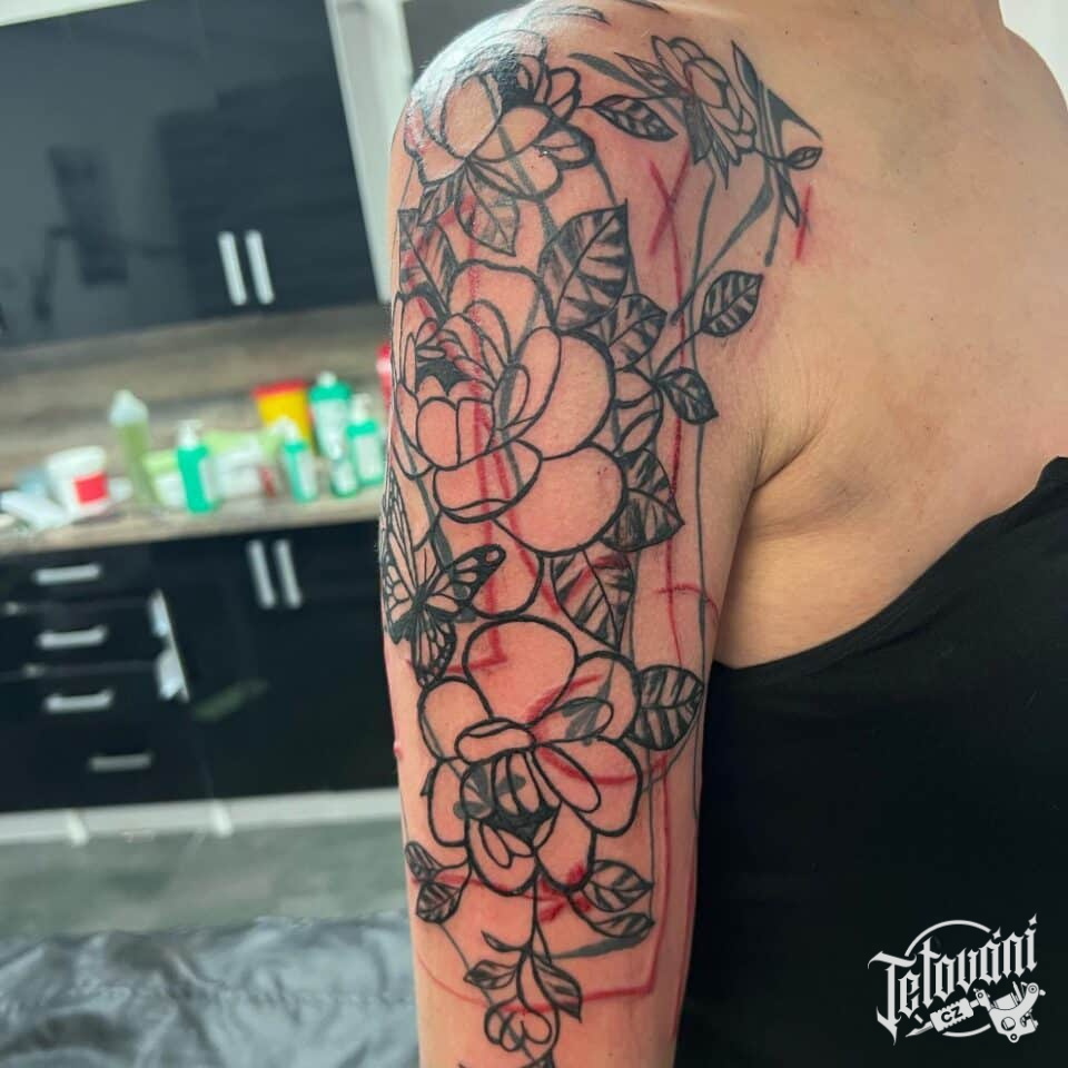 Tetování květiny na rameno