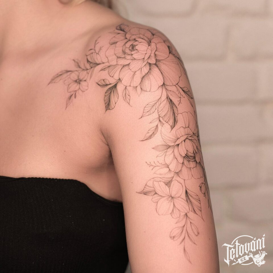 Tetování květiny na rame...