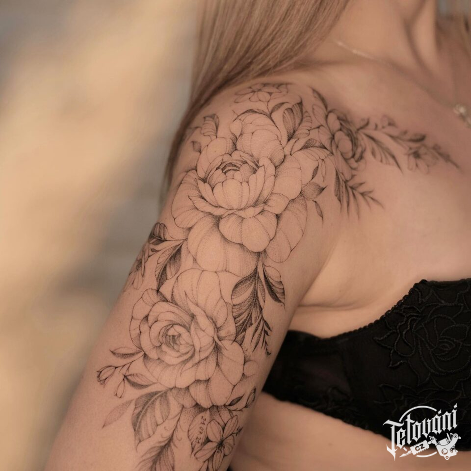 Tetování květiny na rameno, ruku, klíční kost