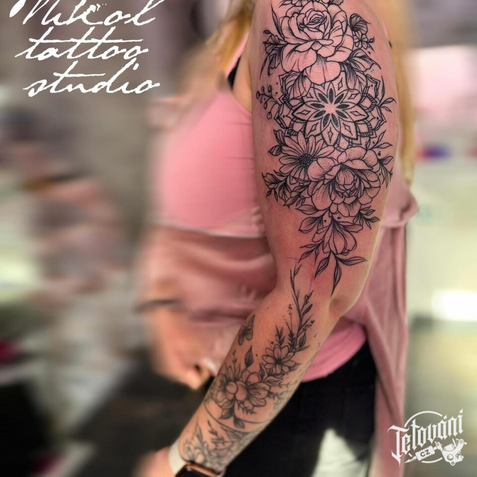 Tetování květiny na rukávu