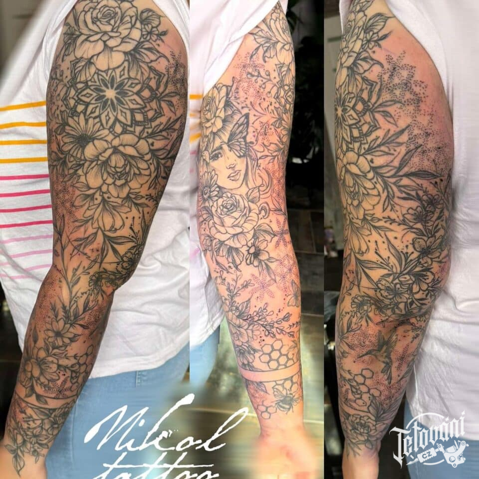 Tetování květiny na rukávu