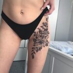 Tetování květiny na stehně