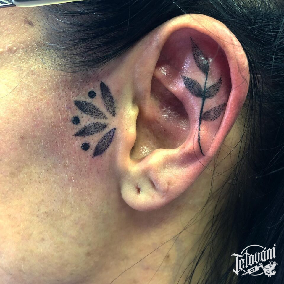Tetování květiny na ucho