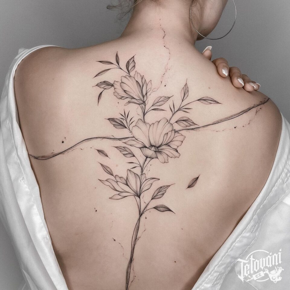 Tetování květiny na záda