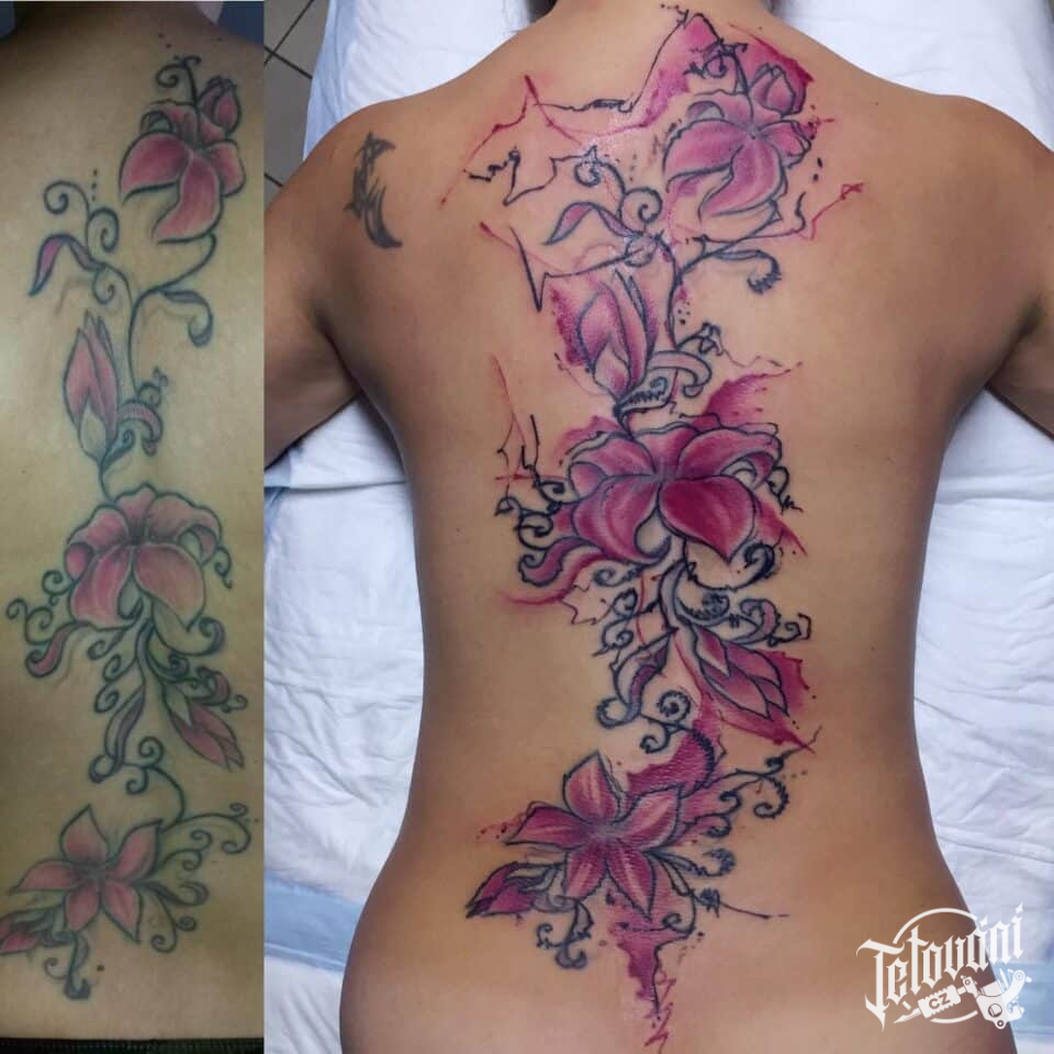 Tetování květiny na záda
