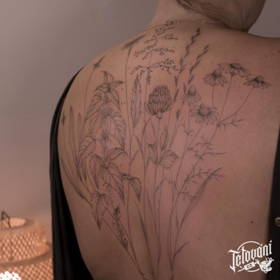 Tetování květiny na záda