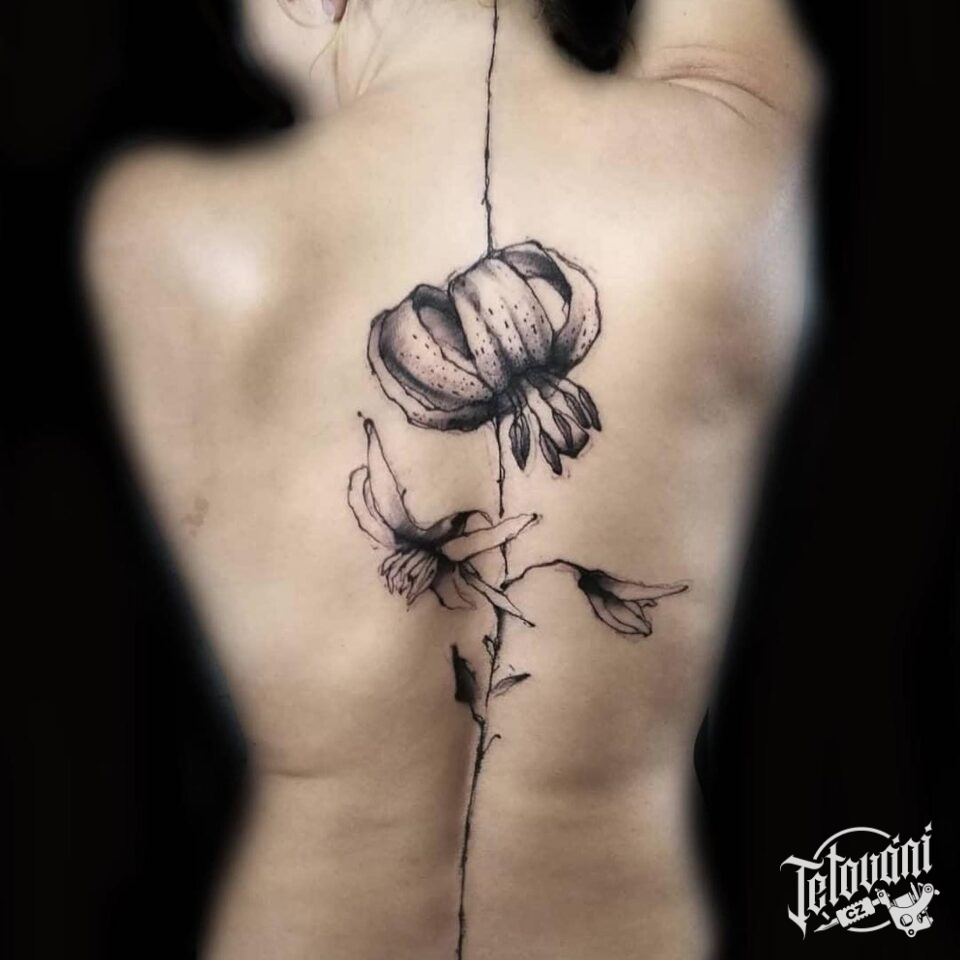 Tetování květiny na zádech