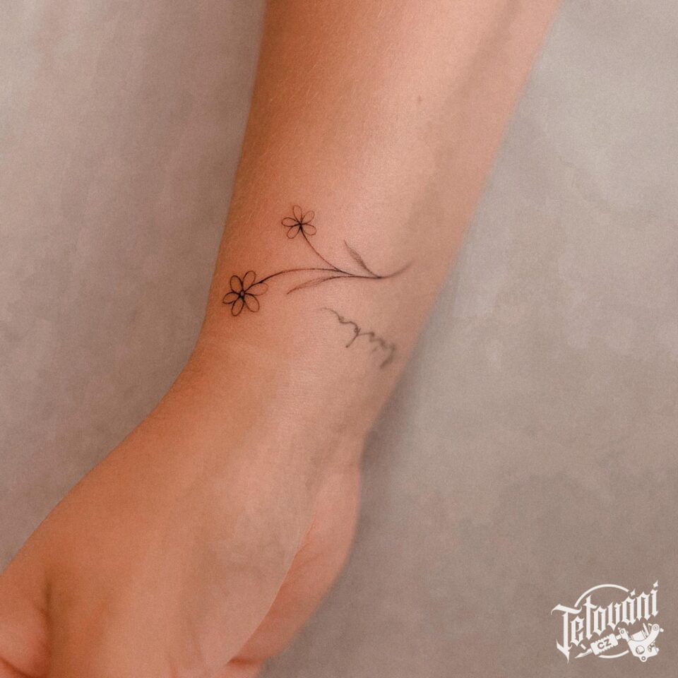 Tetování květiny na zápěstí