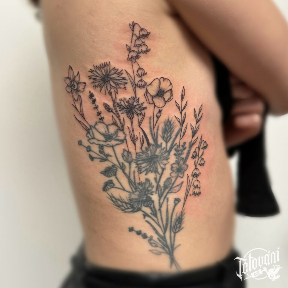 Tetování květiny na žebra