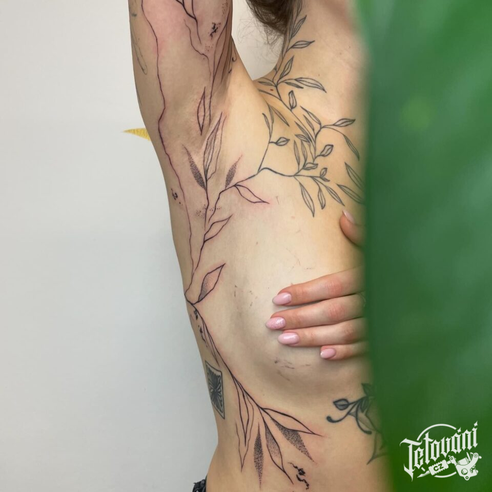 Tetování květiny na žebrech