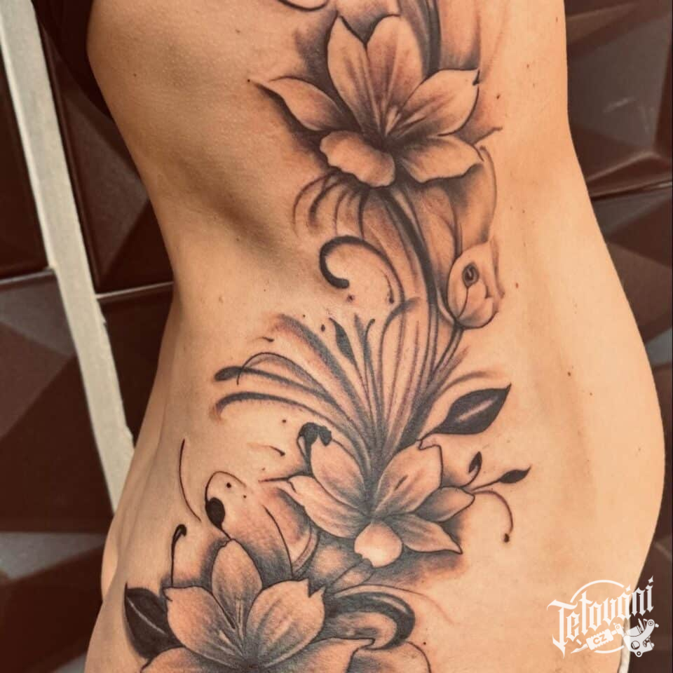 Tetování květiny na žebrech
