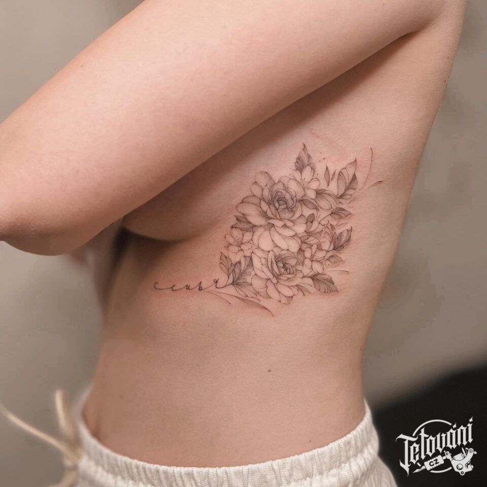 Tetování květiny na žebrech