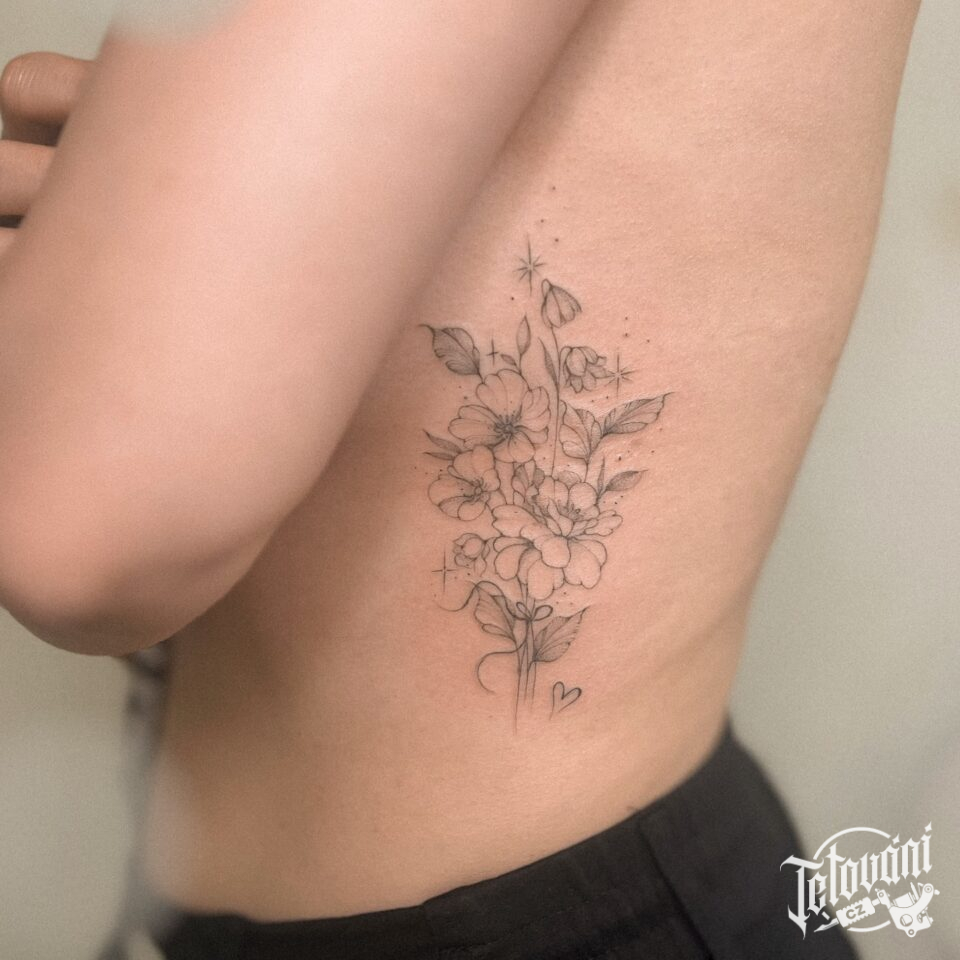 Tetování květiny na žebrech
