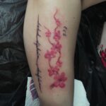 Tetování květiny, nápis, citát na stehno