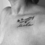 Tetování květiny, nápis na klíční kost