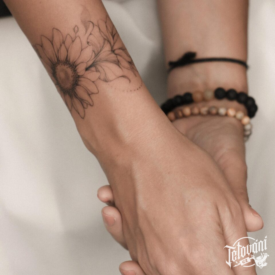 Tetování květiny, náramek na předloktí