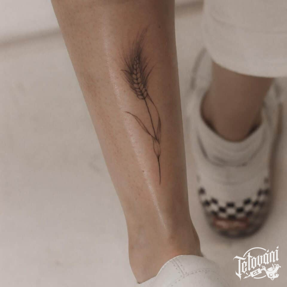 Tetování květiny, obilí na lýtku