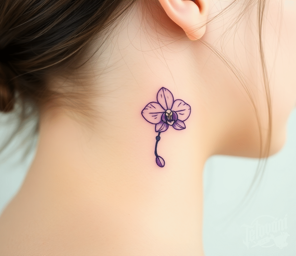 Tetování květiny, orchidej na krku