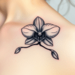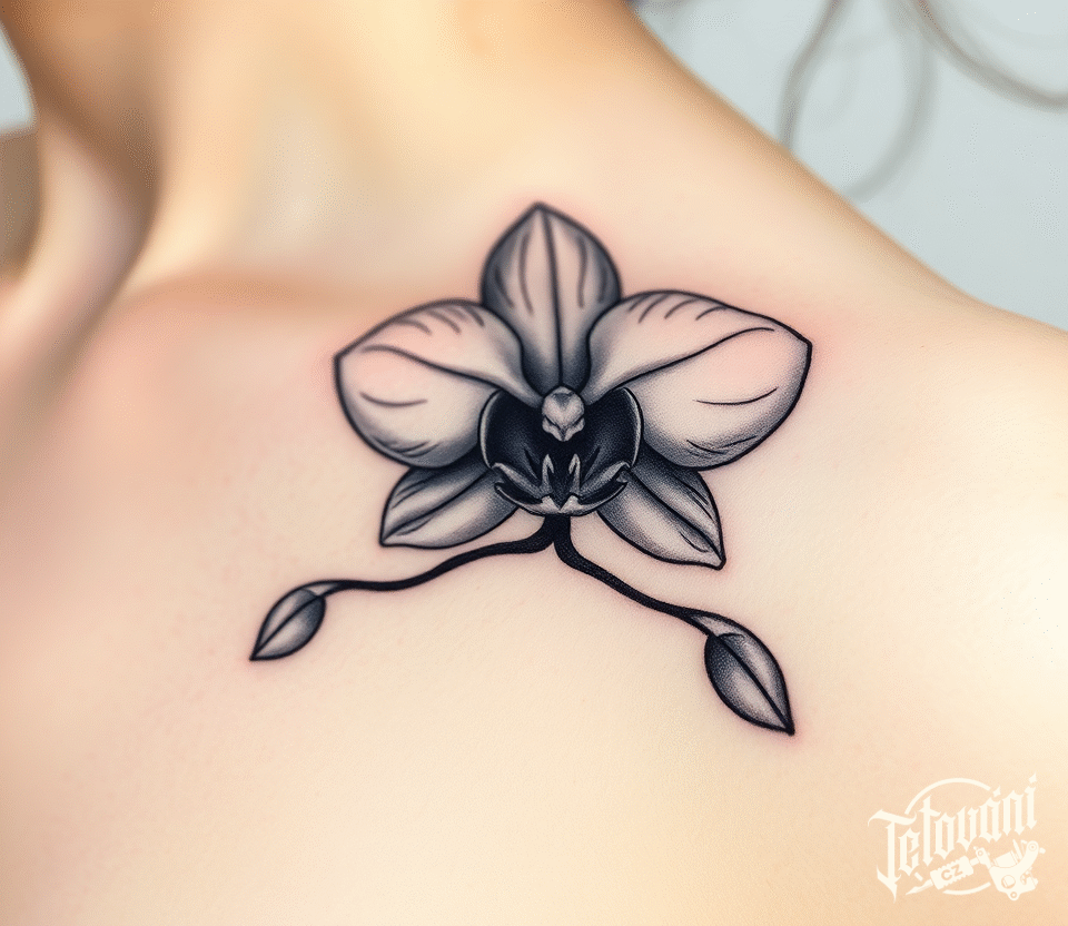 Tetování květiny, orchidej pod klíční kost