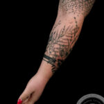 Tetování květiny, ornamenty a čáry, pruhy na rukáv