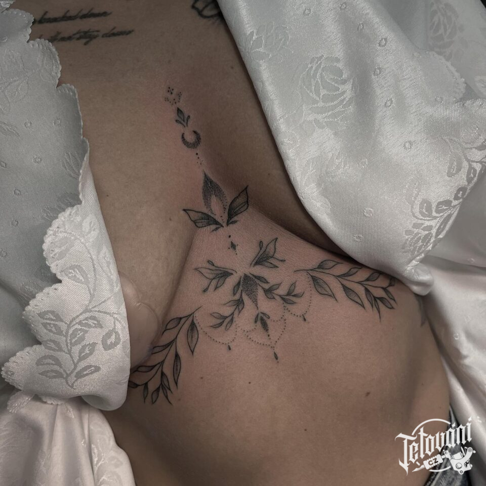 Tetování květiny, ornamenty na hrudník