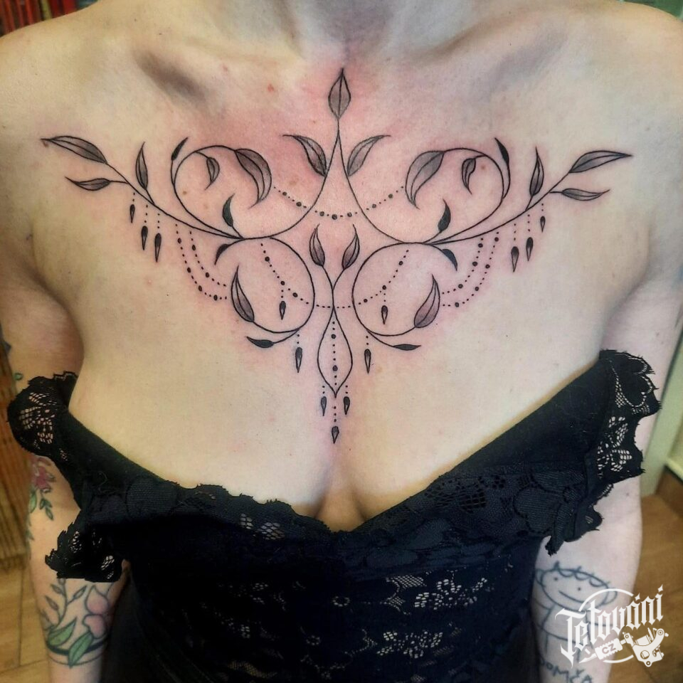 Tetování květiny, ornamenty na hrudník