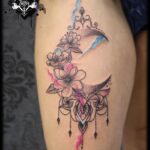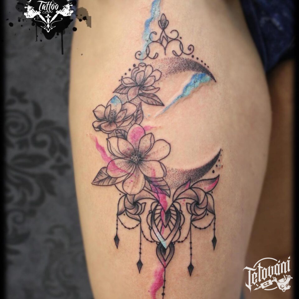 Tetování květiny, ornamenty na stehno